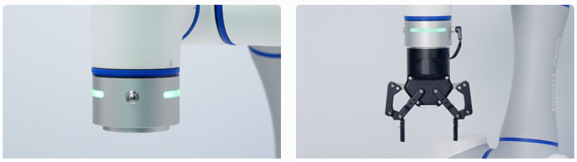 Mặt bích có đèn báo trạng thái dạng vòngSản phẩm có đèn báo trạng thái dạng vòng để hiển thị trạng thái robot theo thời gian thực, được thiết kế với nút nhấn để kéo. | Giao diện đầu cuối không chiếm dụngKhông chiếm dụng các cổng RS485 hoặc I/O phía bên dụng cụ, đảm bảo khả năng tương thích với các thiết bị bên ngoài (chẳng hạn như kẹp điện hoặc camera thông minh VX500). | |||